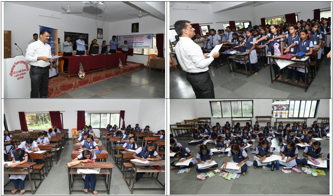 Essay and Poster competitions on VAW-2025 theme were conducted for the students of S.M. Wadke High School, Chondhi-Kihim Alibag. Total 112 students participated in the Poster competition and 33 students participated in the Essay competition. The participants along with Teachers and Principal of School were administered with the Integrity Pledge in Marathi language.