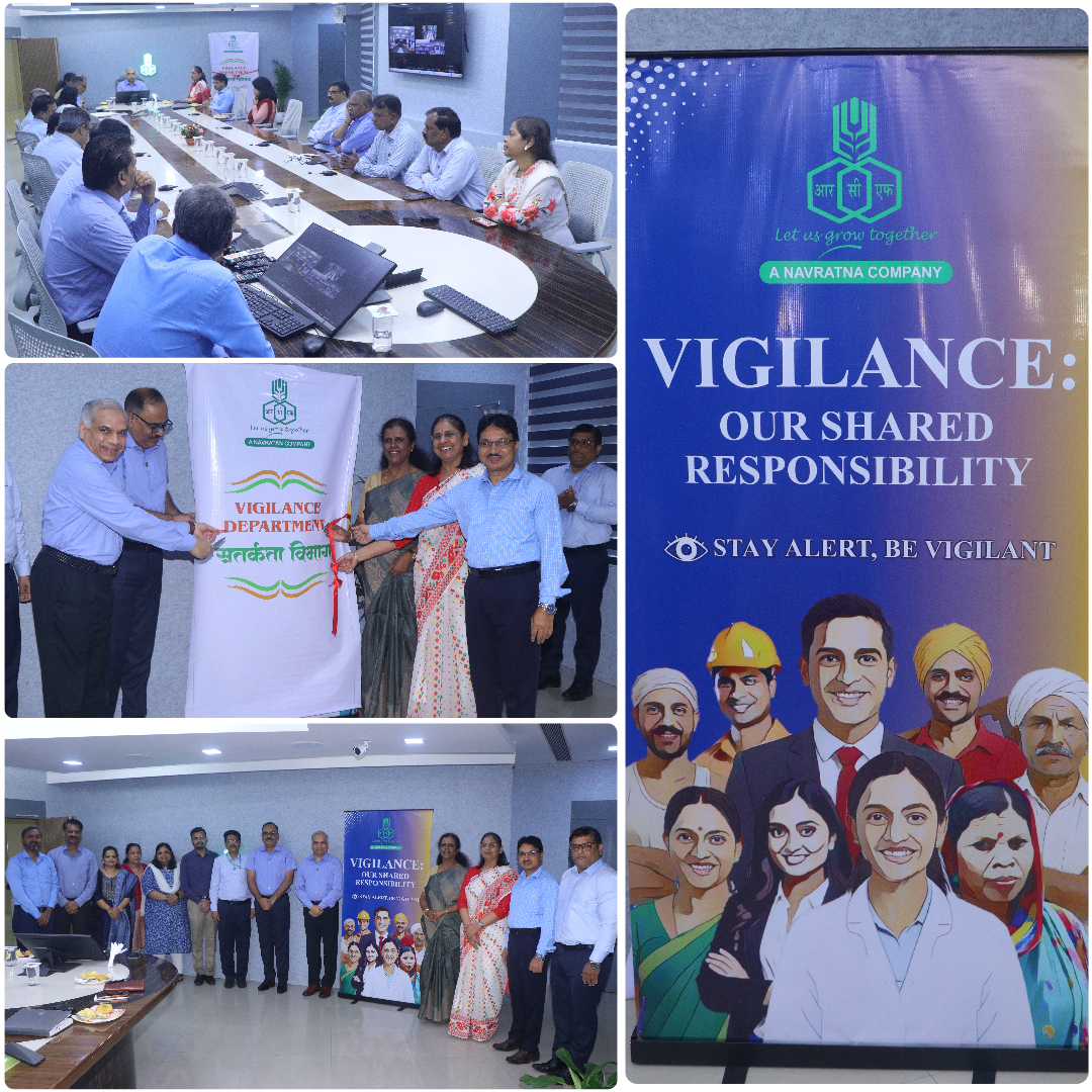 As per directives from CVC, a 3-month campaign on Preventive Vigilance measures under VAW-2025 was launched in RCF Ltd on 18th August, 2025 by Hon’ble CMD in the presence of D(F), D(T), D(M), CVO and other senior management from Trombay, Thal and Marketing units. The poster on the theme “Vigilance: Our Shared Responsibility” was unveiled on the occasion. The purpose and detailed activity plan for the campaign was explained and appeal was made for active and wholehearted participation from all employees and stakeholders.